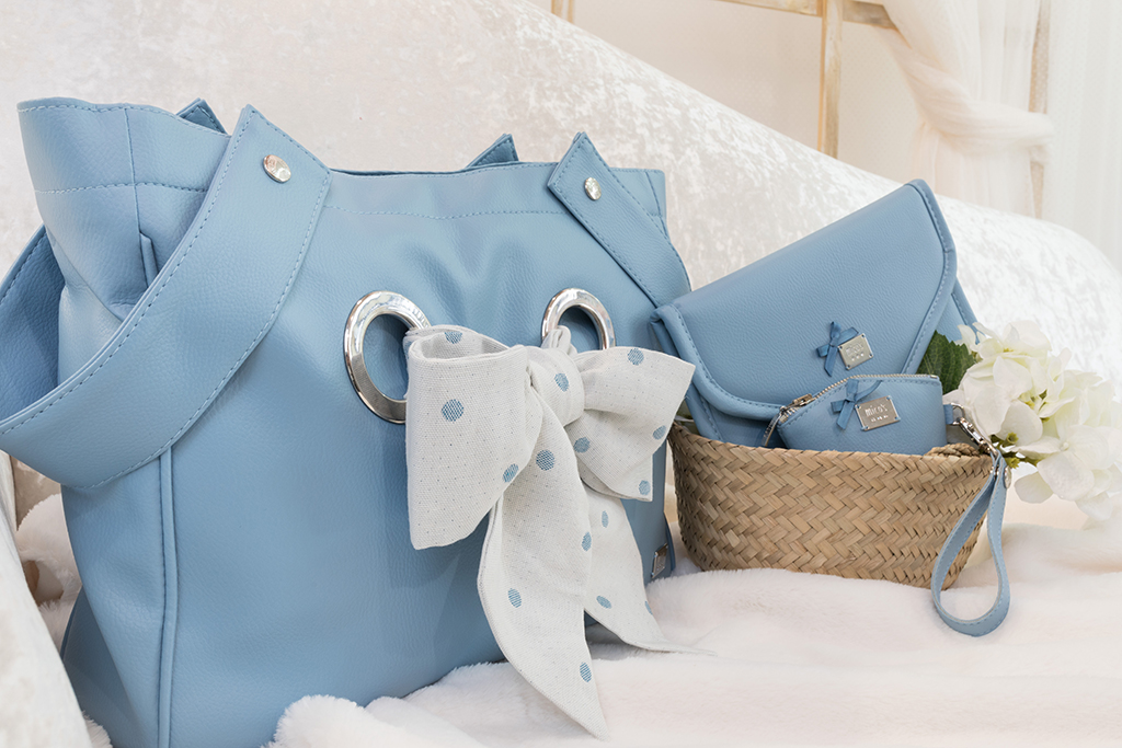 Los colores rosa, celeste y camel empolvados son los que protagonizan la colección Sinfonía, haciendo de ella una , colección muy romántica, delicada, única y sencilla. La combinación con el blanco y los topos hará que te enamores de ella y quieras tenerla ya. Con esta colección tendrás todo lo que necesitas: portabiberón, portachupetes, portadocumentos, saco para el capazo y la silla, neceser, bolso para el carro y cambiador portátil. Seguro que te encanta todo.